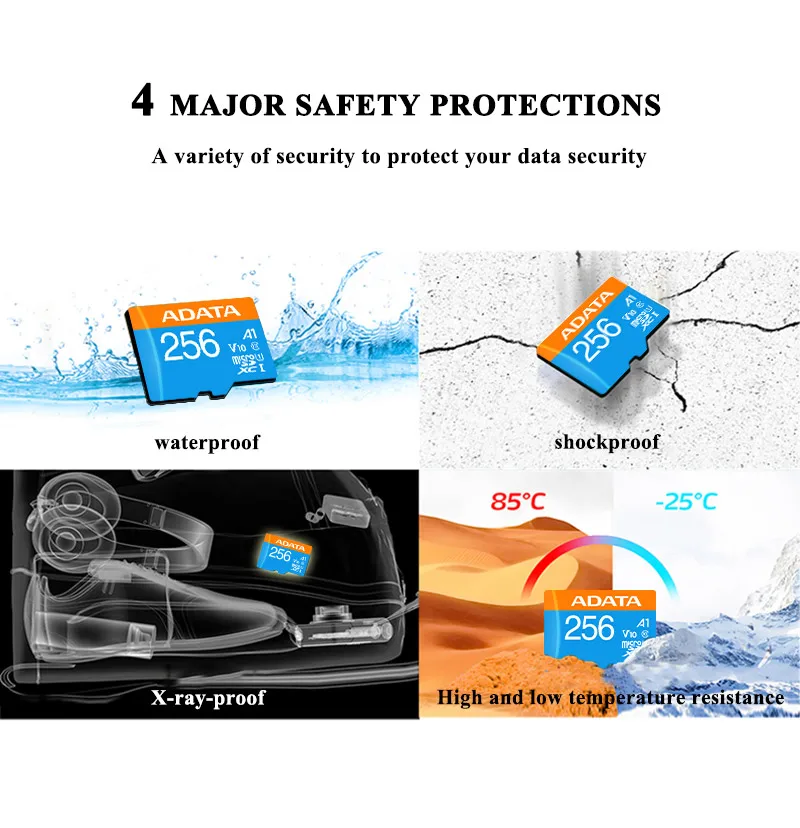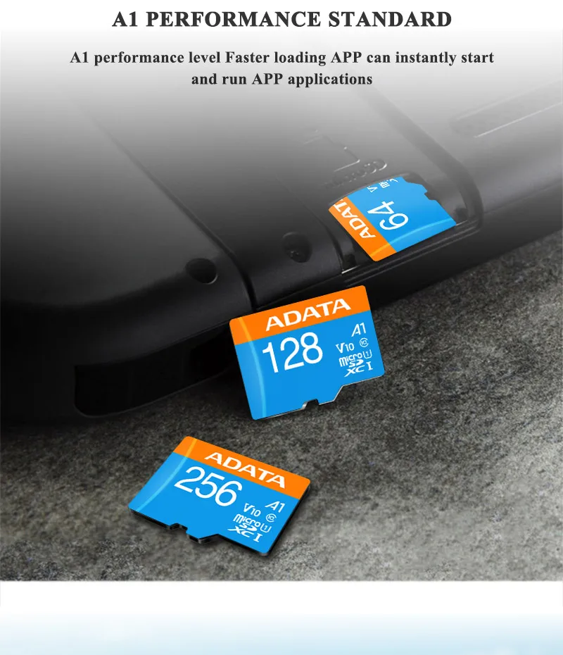 Étiquettes : 10, 128, 256, 32, 64, à, A1, ADATA, CARD, carte, Class, data, GB, Mémoire, Memory, V10