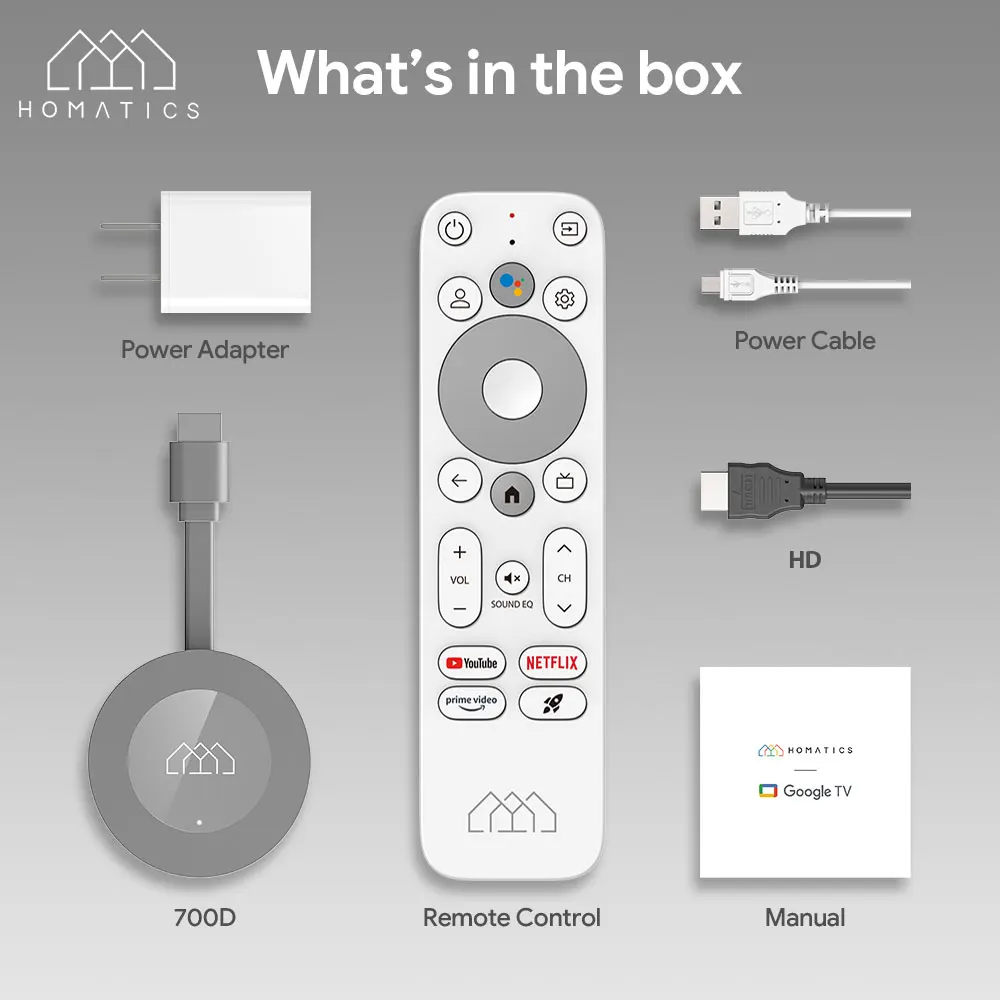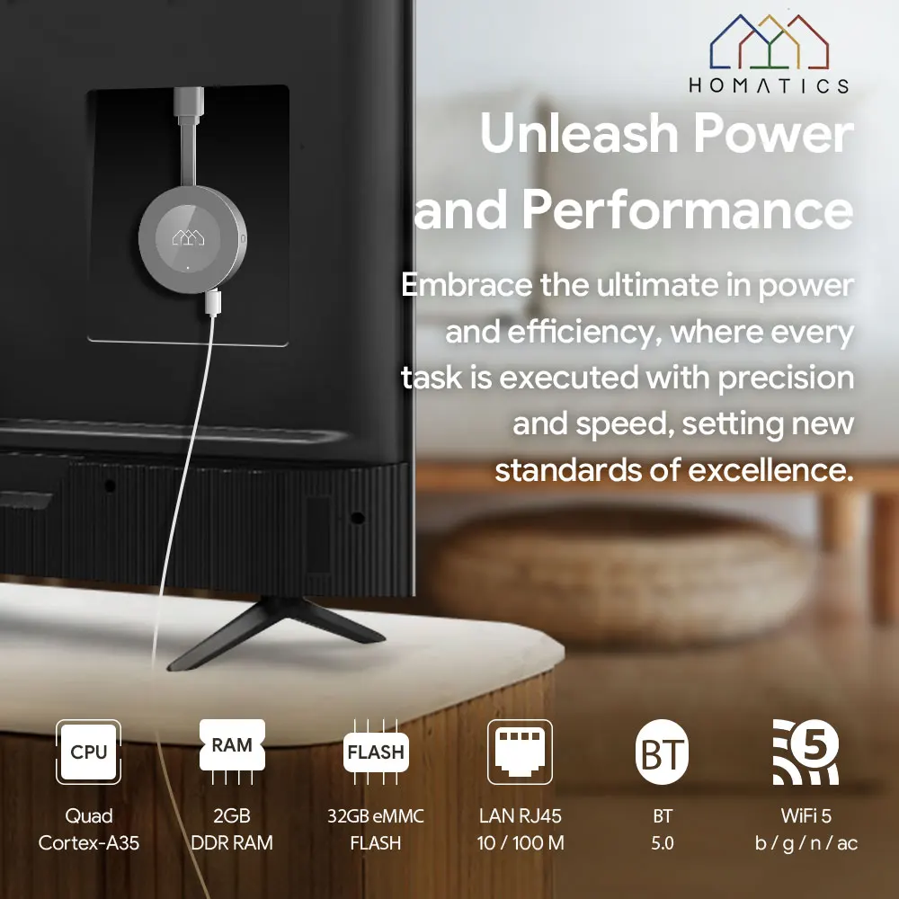 • Bâton TV 4K:Découvrez la meilleure qualité vidéo avec le bâton TV 4K de Homatics, offrant des couleurs nettes, claires et éclatantes sur l’écran de votre téléviseur.
