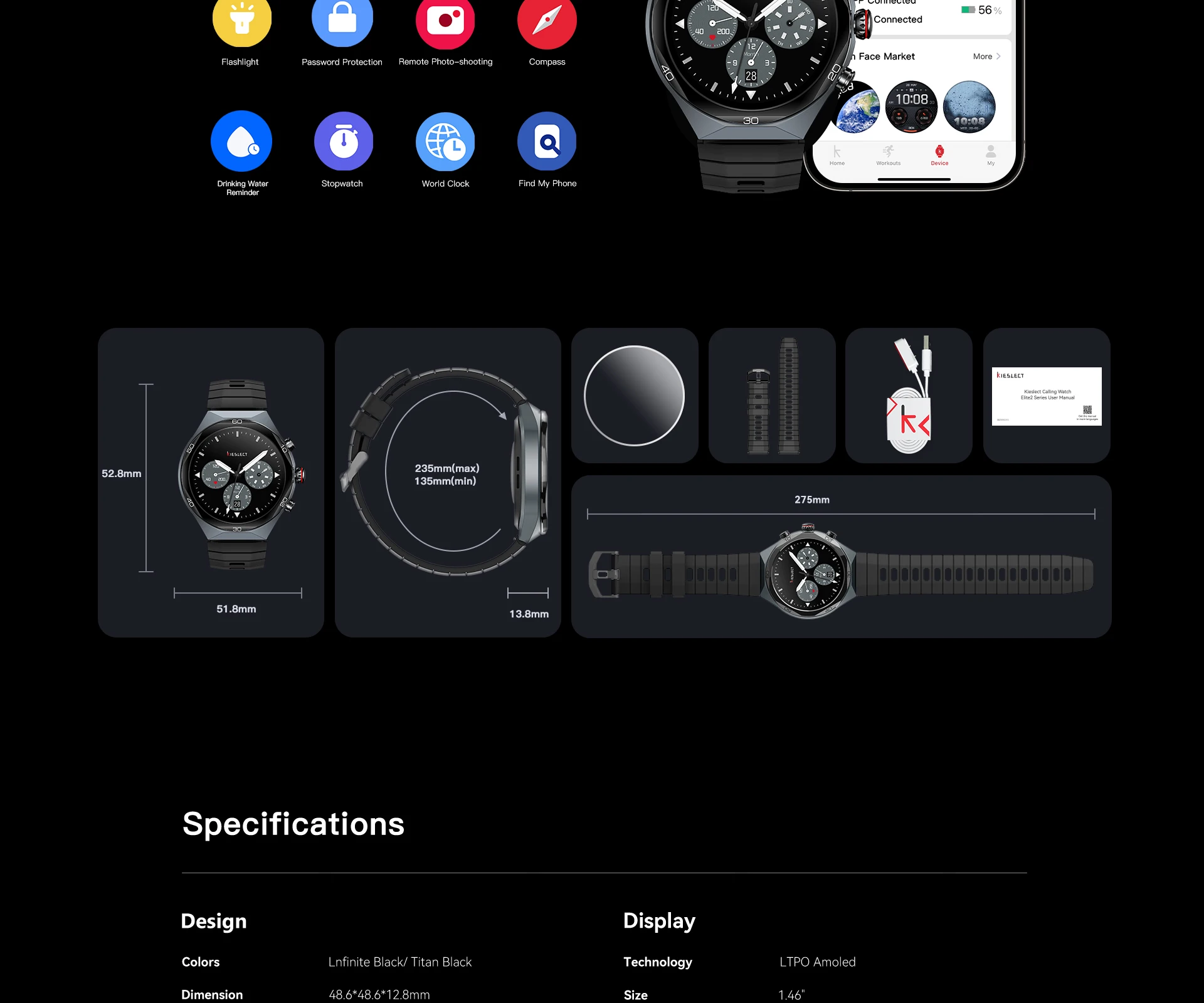 Kieslect Elite 2 AI Smartwatch 1.46 “LTPO AMOLED affichage 510mAh GPS 5ATM précision santé stockage de musique locale Smartwatch