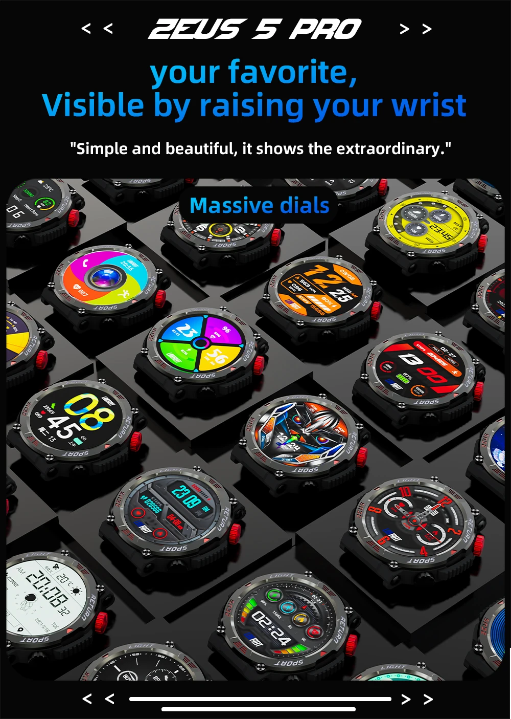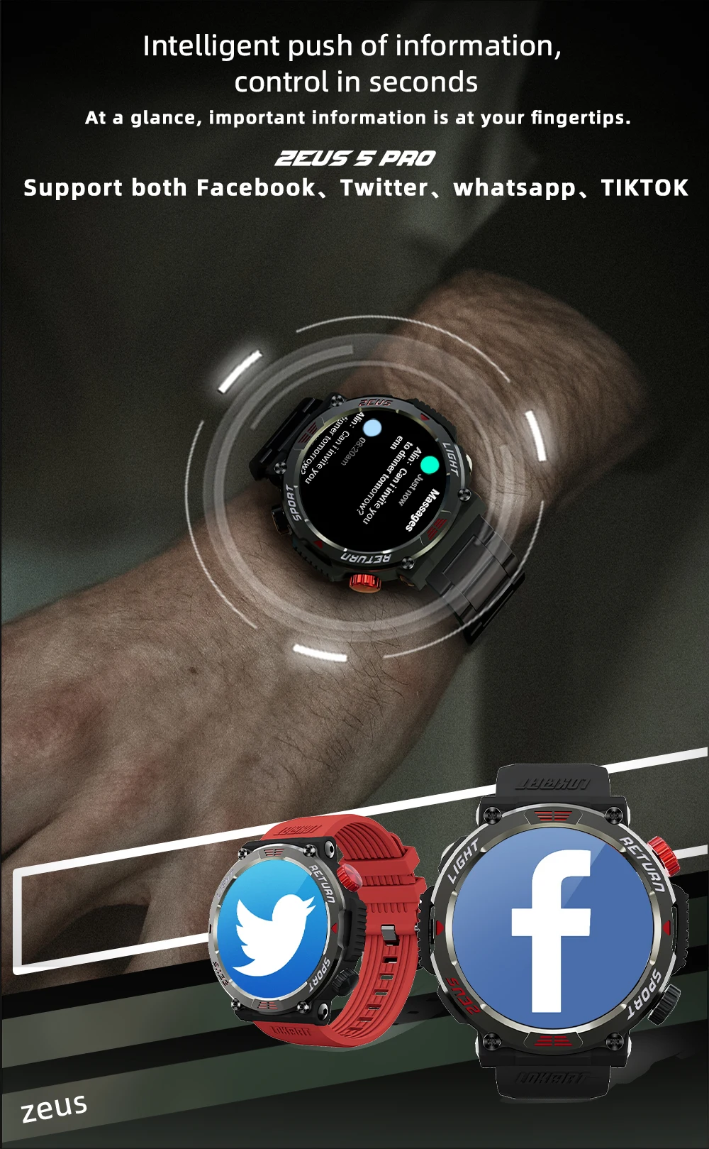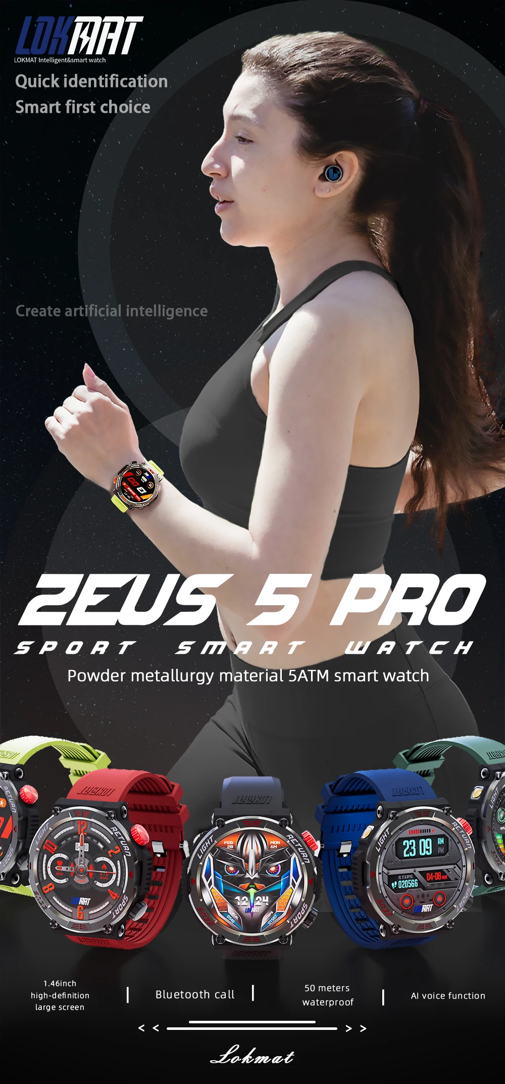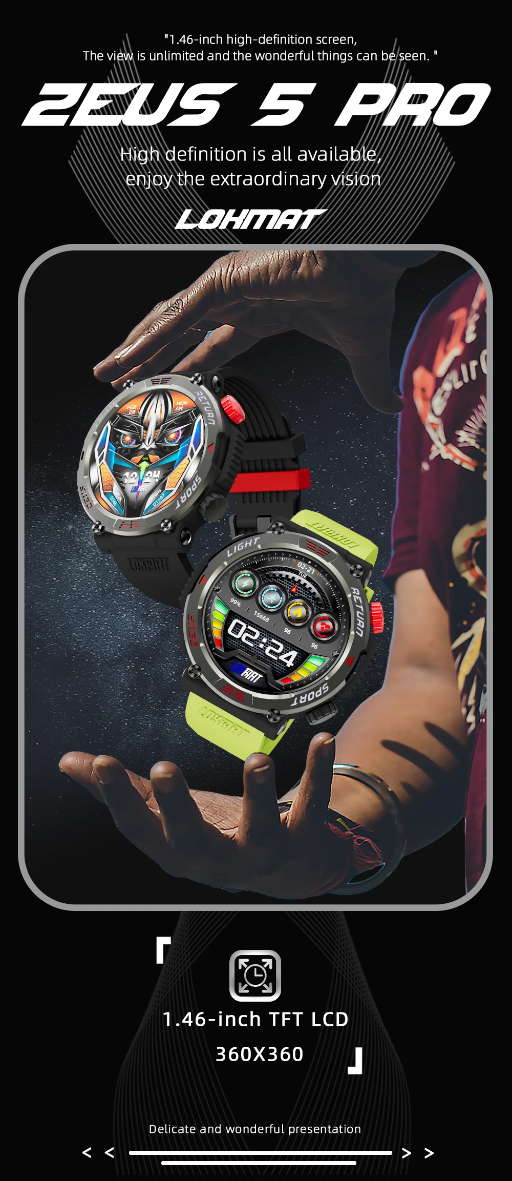 Lokmat Zeus 5 pro lampe de poche, montre intelligente de fitness Bluetooth appels multi-sport mode boussole étanche outdoor montres intelligentes robustes