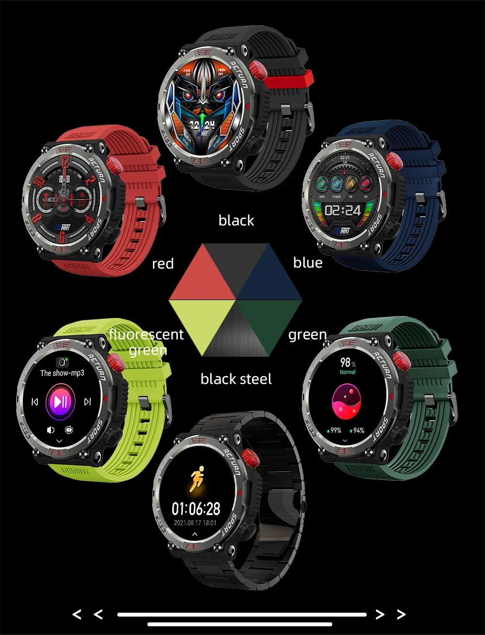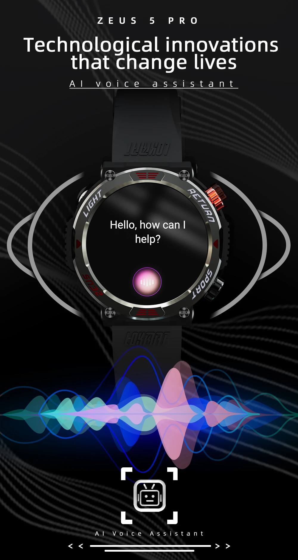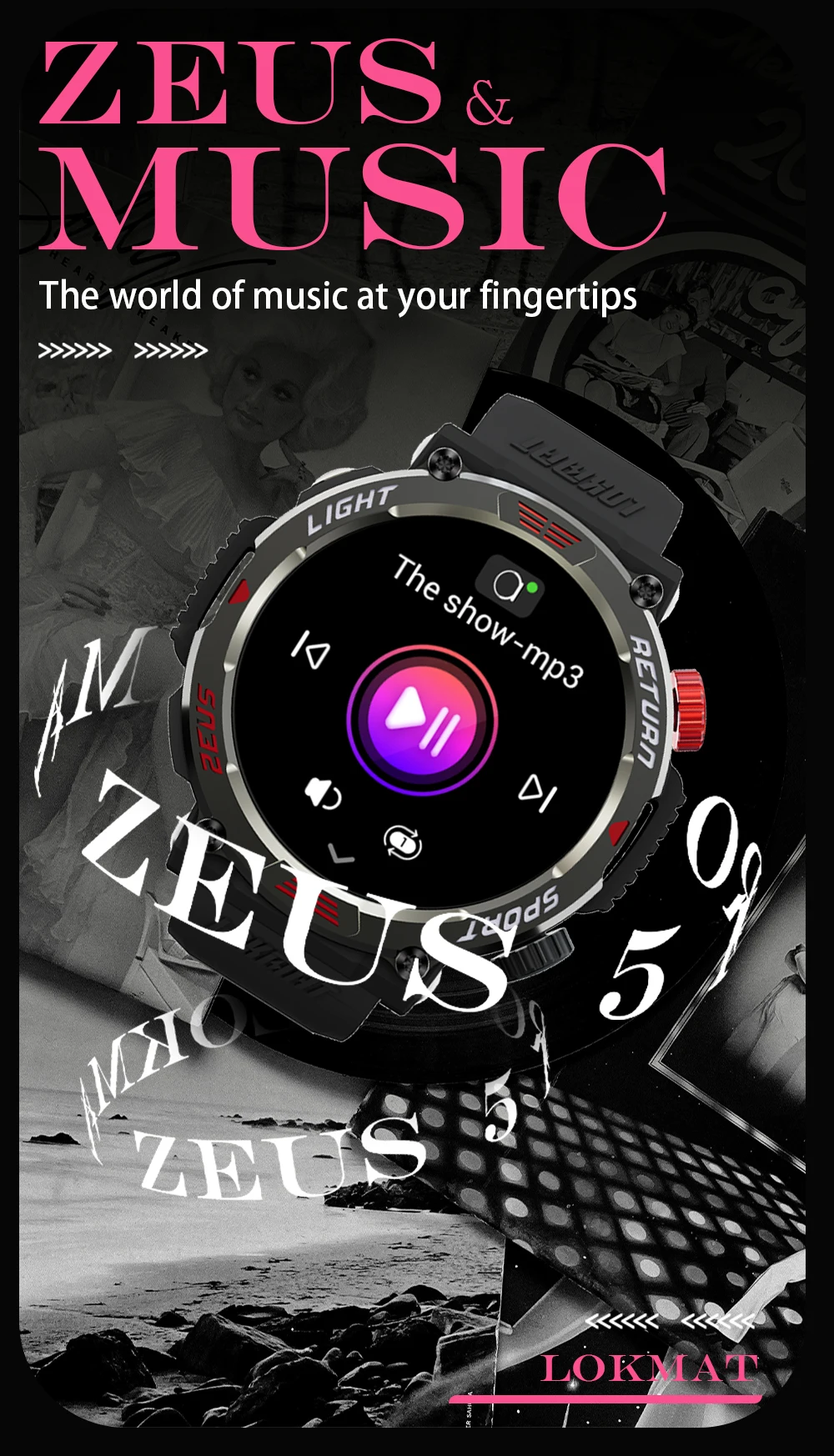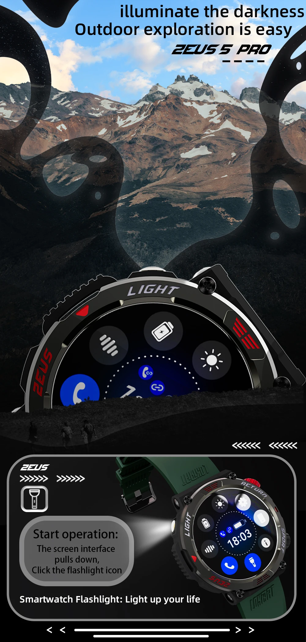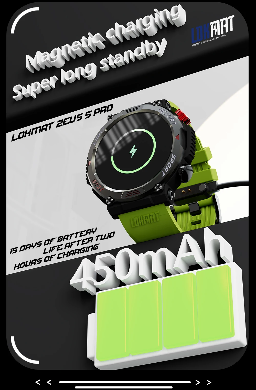 Lokmat Zeus 5 pro lampe de poche, montre intelligente de fitness Bluetooth appels multi-sport mode boussole étanche outdoor montres intelligentes robustes