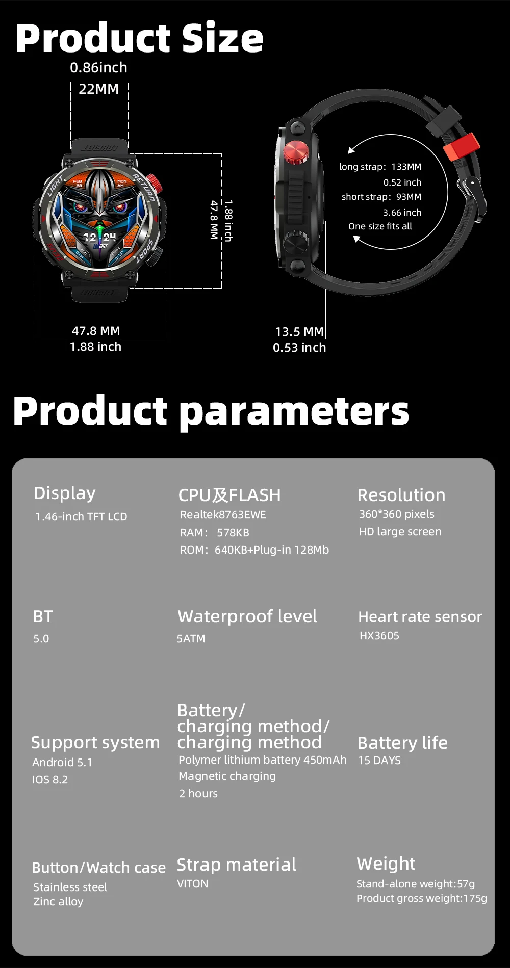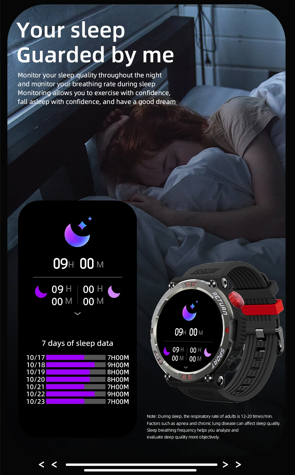 • Imperméable :Avec une qualité étanche de vie, cette montre intelligente peut résister aux éclaboussures et à la pluie.