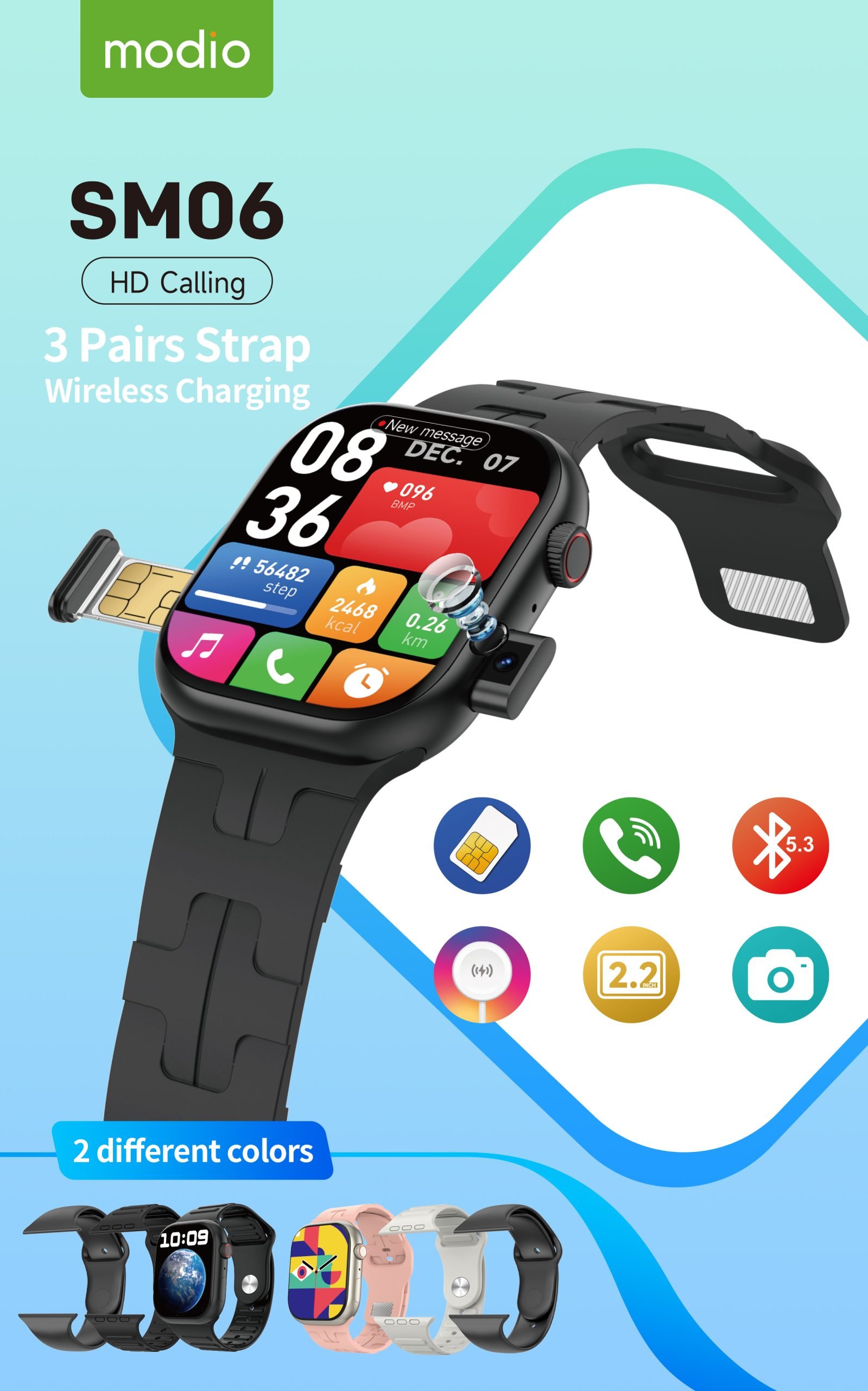 Modio SM06 – Smartwatch avec SIM, Appel HD & Camera