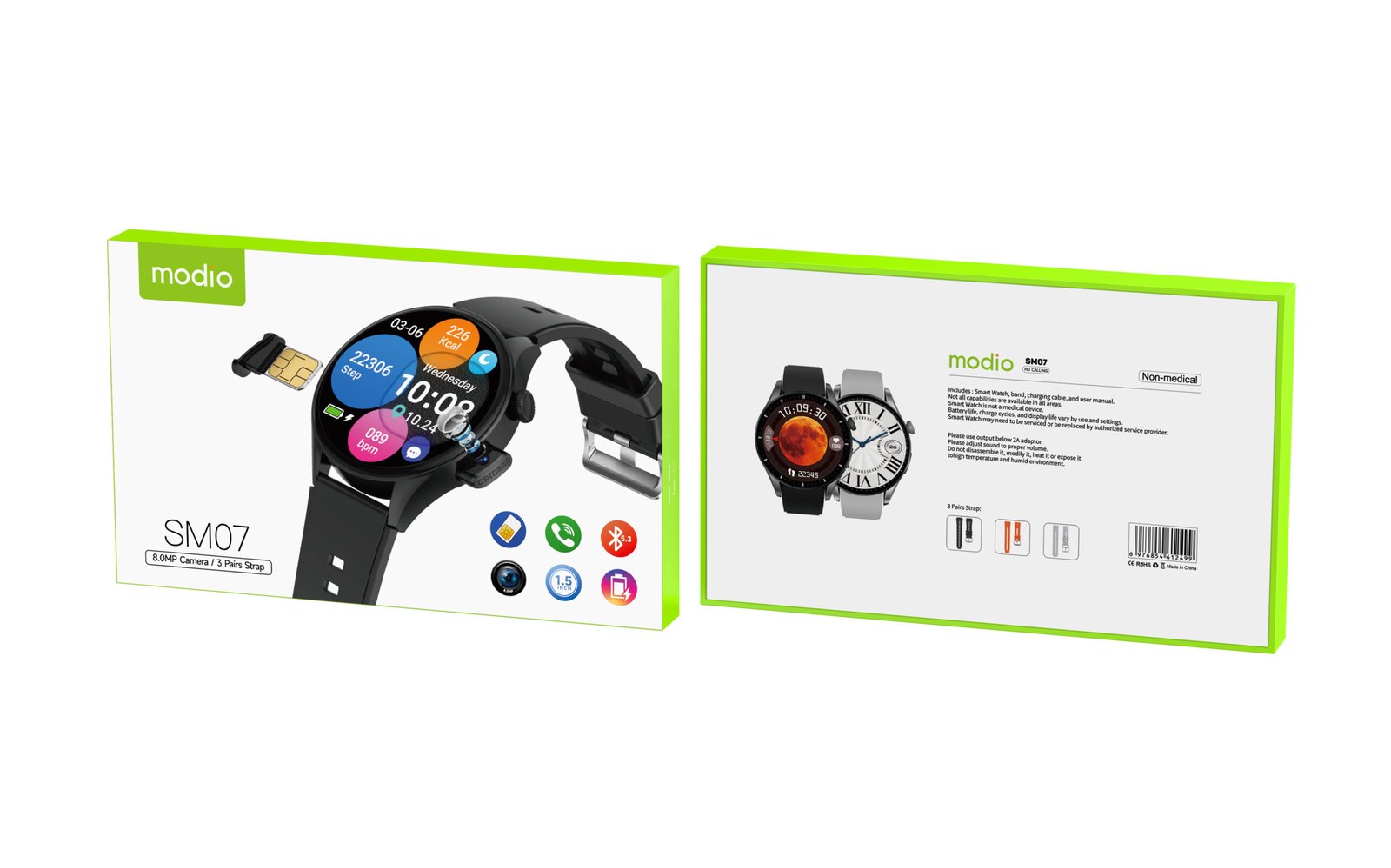 Modio SM07 – Smartwatch avec SIM, Appel HD & Camera