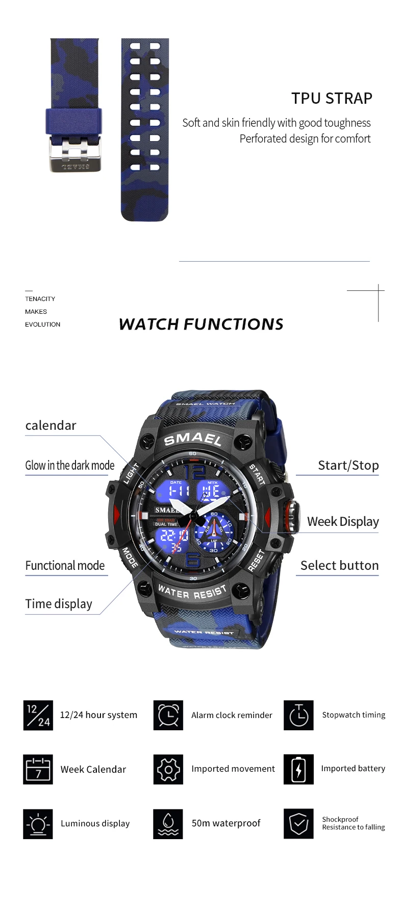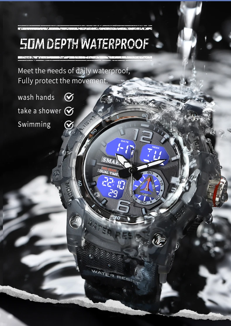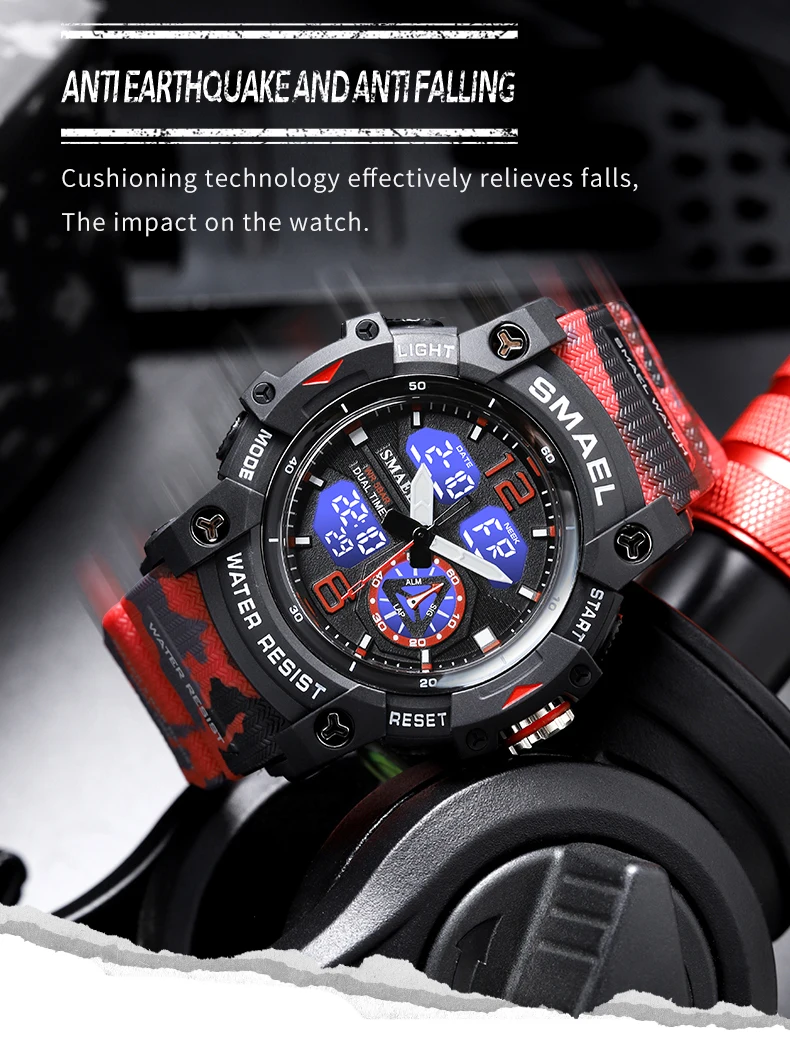 • Résistant aux chocs:La montre est conçue pour résister aux chocs et aux chocs, ce qui la rend parfaite pour les sports et les activités de plein air.
