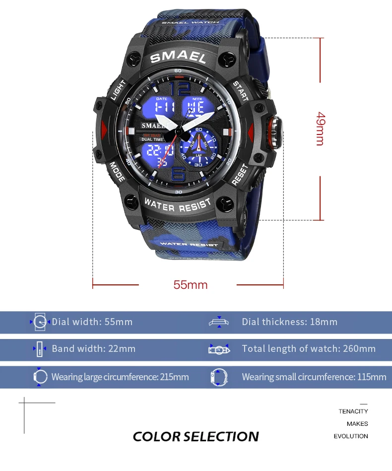 • Résistant aux chocs :La montre est conçue pour résister aux chocs et aux chocs, ce qui la rend parfaite pour les sports et les activités de plein air.