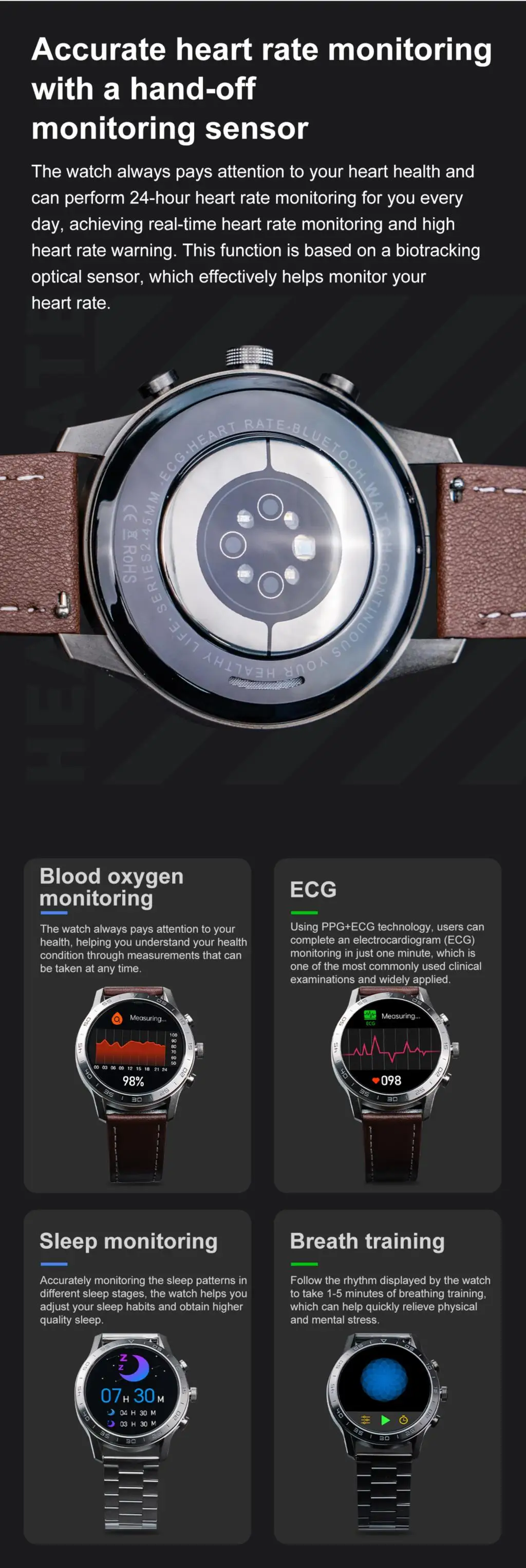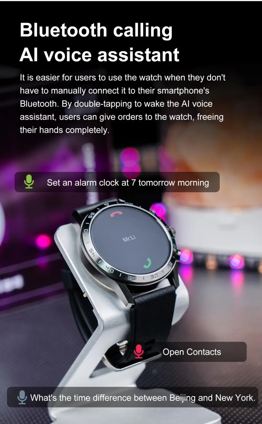 Sanlepus Watch 3 Classic + Business Smart Watch Hommes 1.45 Écran NFC Acier Inoxydable Étanche BT Call Fitness 100 + Sport Plus Smartwatch