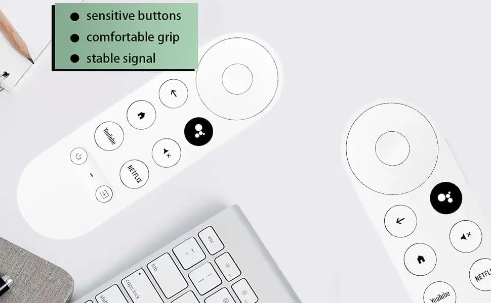 【Haute qualité】La télécommande de remplacement de l’appareil Chromecast 4K Snow a les mêmes fonctions et performances que la télécommande d’origine, avec une prise en main confortable et un signal stable. 2 piles AAA (hors piles) doivent être installées.