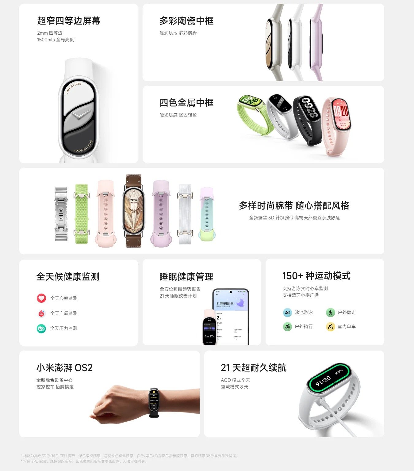 Xiaomi Mi Band 10 : 150+ Modes sportifs Écran AMOLED 1,72 pouces BT5.4 Endurance 21 jours 5ATM Diffusion de fréquence cardiaque